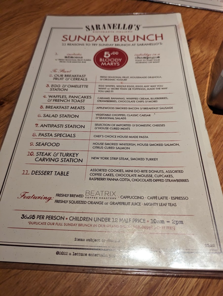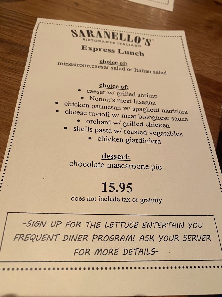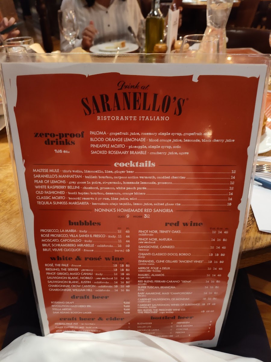 Whether you're dining in or hosting an event, Saranello's promises memorable moments and delightful flavors.